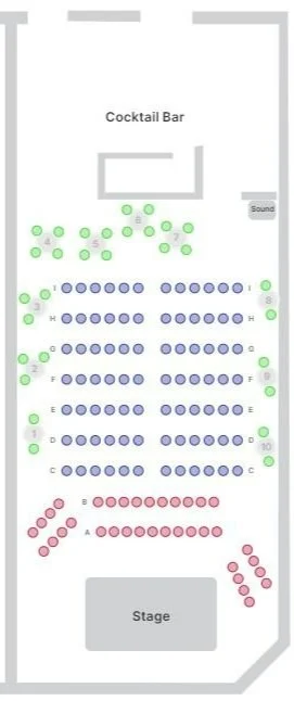 MAS offers three seating sections for each show: High Tops, Front 2 Rows, and General Admission. Seating within each section is first-come, first-choice. There is no assigned seating.